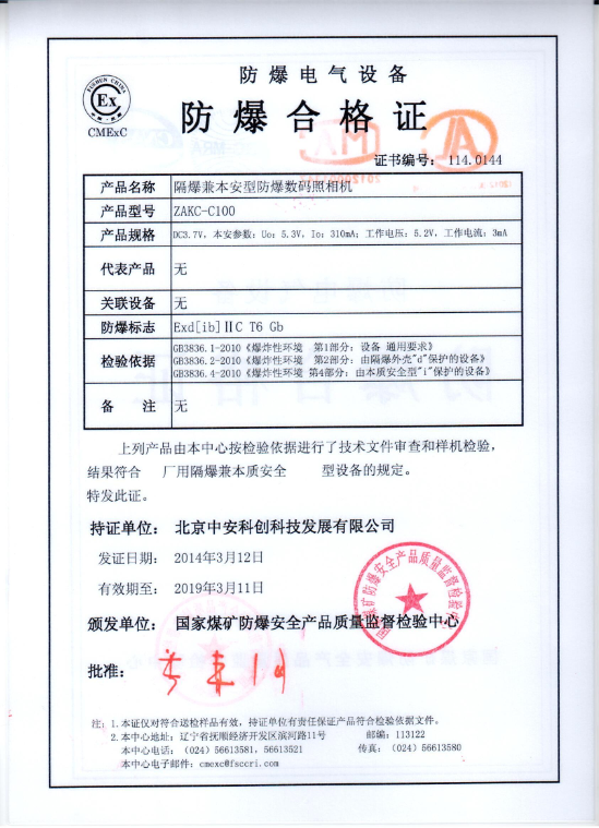 隔爆兼本安型防爆數(shù)碼照相機,實現(xiàn)了“一機兩用(礦區(qū)、化工區(qū))通用”的防爆數(shù)碼照相機產(chǎn)品。針對市場專業(yè)客戶對防爆數(shù)碼相機的特定需求,在參照和總結(jié)市場同類產(chǎn)品優(yōu)缺點的基礎(chǔ)上,立足于安全、便捷、易操控的宗旨,歷時一年研發(fā)、定制、認證,可以全面滿足煤礦、化工等爆炸性氣體環(huán)境的要求。與市場同類產(chǎn)品相比,ZAKC-C100隔爆兼本安型防爆數(shù)碼照相機,同時通過了專業(yè)檢測機構(gòu)對于礦區(qū)防爆和化工廠區(qū)防爆的應(yīng)用檢測,具有明顯的技術(shù)優(yōu)勢,是目前市場上性能最好、性價比最高的防爆數(shù)碼相機,是防爆技術(shù)與成熟相機技術(shù)的完美結(jié)合!